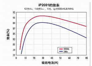 因此,IR公司開發了iPOWIR系列產品。這些模塊化構造模塊包括帶FET的驅動器IC、回掃(flyback)二極管、以及其它實現一個完整多相DC/DC電源所需的元件。這些器件能被非常緊密地耦合在一起,即便在如下圖所示的很高頻率下也能非常高效地工作。