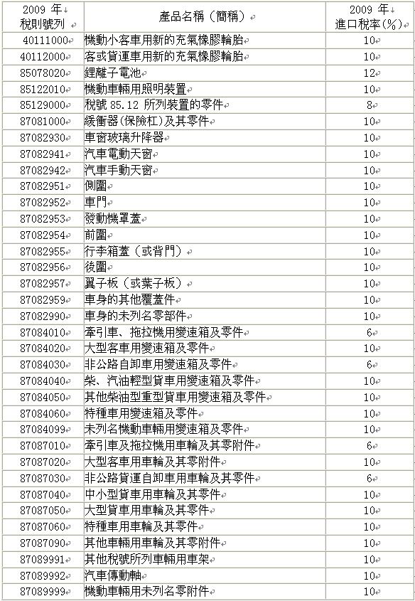 表2大陸方面早期收獲產(chǎn)品清單(汽車零組件)