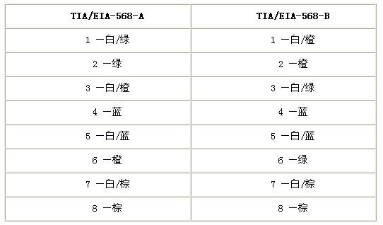 線序排列的標準有兩個,即TIA/EIA-568-A標準和TIA/EIA-568-B標準。