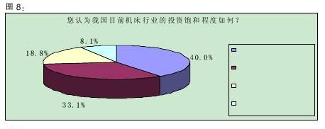 調查數據顯示,40.0%的受訪者認為我國目前機床行業的投資“大體上飽和,但還有投資空間”,33.1%認為“不飽和,還需要加大投資力度”。(詳見圖8)該結果表明,三分之一的被訪者認為機床行業還有投資的空間,加上那些認為投資空間很大的比例,有超過一半的人認為機床行業還應該增加投資,業界對機床行業的預期由此可見一斑。