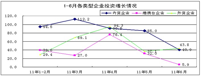 港澳臺企業完成投資401億元,同比增長32.6%,低于全行業35個百分點,其中6月份增長5.9%,比5月回落26.1個百分點。外商投資企業完成投資613億元,同比增長50.1%,6月份增長43.8%,高于5月份增速6.7個百分點。