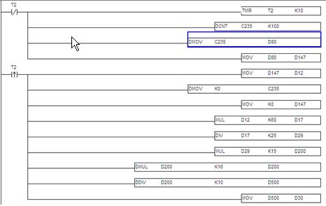 其中輸入點為X0、X1可規(guī)劃成更高速的計數(shù)器,1相輸入可達20kHz,但這兩個輸入點的計數(shù)頻率相加仍必須小于或等于頻寬20kHz的限制。若計數(shù)輸入為2相輸入信號,則計數(shù)頻率約為4kHz。輸入點X2、X3高速計數(shù)器1相輸入可達10kHz。