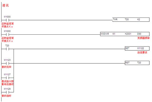 3.2.3通訊程序:臺達SS PLC提供兩個通訊口。本文中,SS PLC的COM1口已與觸摸屏通訊,所以利用SS PLC的COM2 通訊口(此通訊口接口是RS485),支持MODBUS通訊便利指令,編通訊程序像編順序邏輯程序一樣簡單,讓對通訊底層不是很了解的人也能快速上手。快速編寫MODBUS通訊程序,控制如臺達全系列產(chǎn)品,如變頻器、溫控器、伺服等產(chǎn)品。見圖10。