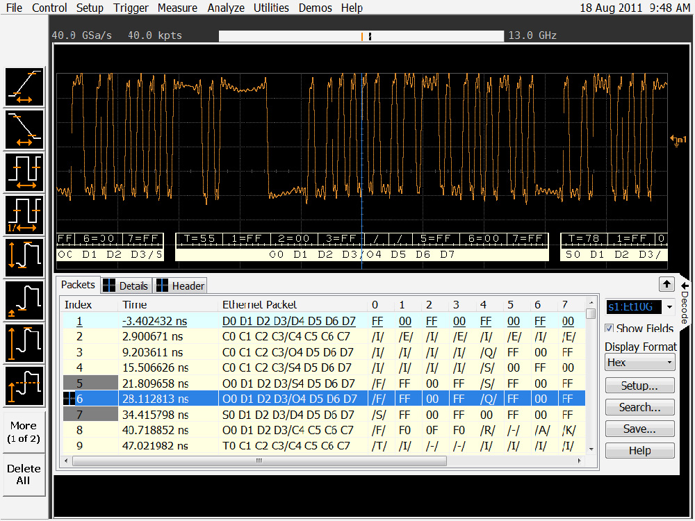 迄今為止,業界僅針對 I2C、SPI、CAN 等總線或基于 8b/10b 的解碼方案提供以示波器為基礎的協議解決方案,而 64b/66b 開發人員只能對這一復雜設計進行手動解碼。Agilent N8815A 以太網 10Gbase-KR 解碼應用軟件可以實時執行解碼程序,使開發團隊能夠更快地推出優質產品。