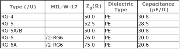 一般在測量高頻電路的時候,我們通常采用RF同軸線,比如常見的RG-58C,從直覺來看,50ohm的RF同軸線不會對測量引起太大的影響,可是如果從實際來思考,傳輸線可以看做是一系列LCRG組成的網(wǎng)絡(luò),由于CL的存在,這個網(wǎng)絡(luò)必然存在一個工作頻率范圍,由于RG的存在,這個網(wǎng)絡(luò)必然存在損耗,所以傳輸線會對測試系統(tǒng)產(chǎn)生濾波器效應(yīng),也就是說傳輸線也有一個工作頻率范圍的問題,如果我們用網(wǎng)絡(luò)分析儀去測試一根RF同軸線比如RG-58C,在很寬的頻率范圍來掃描其S21,我們會發(fā)現(xiàn)這個同軸線是一個低通濾波器,從RF線材的非理想性來看,這個測量結(jié)果應(yīng)該是意料之中的。可以設(shè)想,如果我們單純讓這根同軸線工作在遠離其低通濾波器corner-frequency很遠的地方,那么從RF匹配的角度來看,這個同軸線就不是一個50ohm或者75ohm匹配的同軸線,如果使用這根線,必然引起很大的反射損耗,此時就必須重新選擇其他RF線材。下面的表格就是一個RF同軸線的參數(shù)表格,可以看到每個feet長度時,其等效的電容大約是20~30pF,對于高頻而言,這個是比較大的電容,這就是為什么我們在進行RF測量時,必須選擇盡可能短的同軸線的原因。