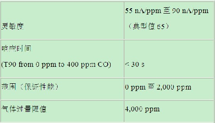 表2. CO-AX傳感器技術規格