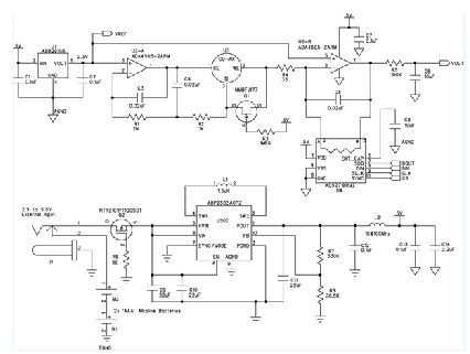 圖2給出了該便攜式氣體探測器的電路。雙通道微功耗放大器 ADA4505-2在恒電位配置(U2-A)和跨導配置(U2-B)下使用。該放大器的功耗和輸入偏置電流非常低,對于恒電位部分和跨導部分都是很好的選擇。每個放大器的功耗僅10 μA,因此電池壽命非常長。