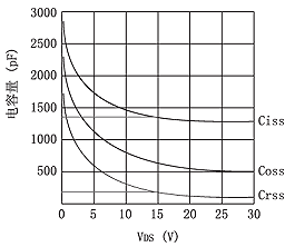 在計算開關(guān)管損耗時要用到輸入電容Ciss(Ciss=CGD+CGS)或反饋電容Crss(Crss=CGS)值。為減小開關(guān)損耗,要選擇Ciss或Crss小的MOSFET。Ciss一般為上千到數(shù)千pF,而Crss一般為幾十到幾百pF。“MOSFETT選擇指南”或“簡略表”中往往沒有Ciss或Crss參數(shù),但有總柵極電容Qg值。由于Qg小的MOSFET,其Ciss或Crss也小。所以可先找出Qg小的MOSFET型號,然后再在數(shù)據(jù)資料中找出Ciss或Crss值。有的數(shù)據(jù)資料的參數(shù)表中無Ciss或Crss參數(shù),但有Ciss和Crss與VDS的特性曲線,可取VDS=15V時的Ciss或Crss值作為計算值,如圖5所示。