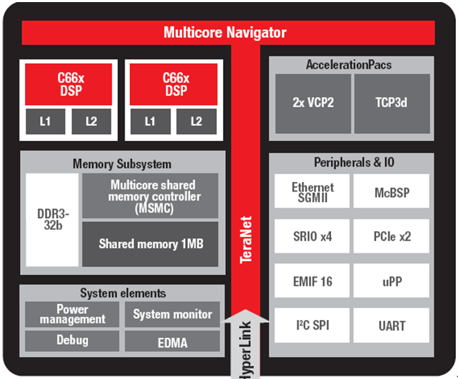 支持與其它 KeyStone 架構器件高達 50GBaud 互連的 HyperLink 可實現資源擴展;