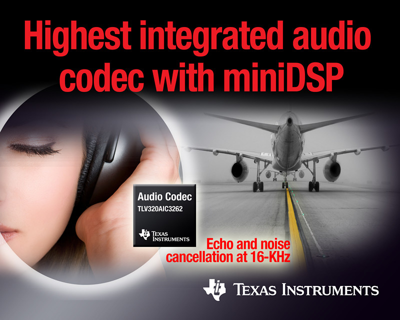 采用 4.8 毫米 x 4.8 毫米 WCSP 封裝的 TLV320AIC3262 現(xiàn)已開始供貨。