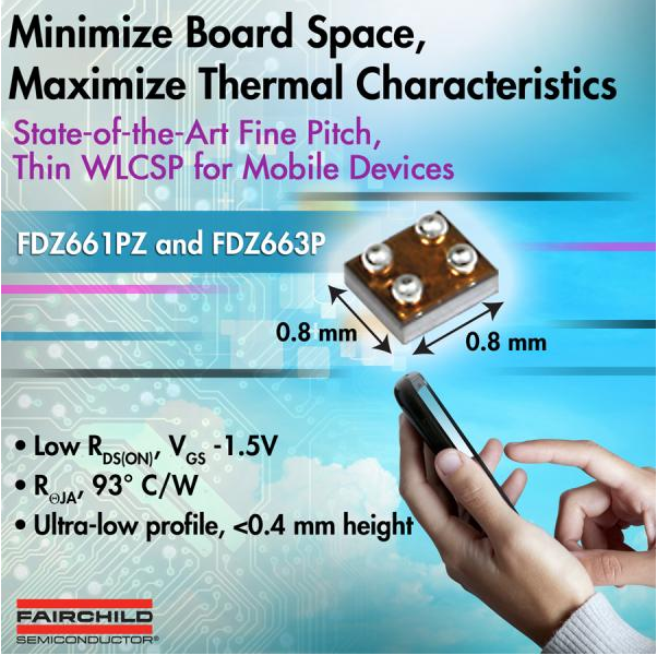 便攜設(shè)備的設(shè)計(jì)人員面臨著在終端應(yīng)用中節(jié)省空間、提高效率和應(yīng)對散熱問題的挑戰(zhàn)。為了順應(yīng)這一趨勢,飛兆半導(dǎo)體公司(Fairchild Semiconductor)開發(fā)了FDZ661PZ和FDZ663P P溝道、1.5V規(guī)格的PowerTrench®薄型0.8mm x 0.8mm WL-CSP MOSFET器件。