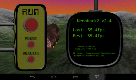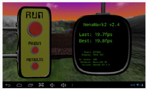 NenaMark2是一款用于Android設備的硬件加速基準測試程序,通過演示一款實時渲染的畫面來對手機的圖形能力進行測試,包括反射、動態(tài)陰影、曲面參數(shù)、復雜光線模式等內容,需要Android 2.0以上系統(tǒng)和OpenGL ES 2.0支持。