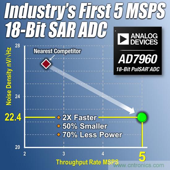 圖片1:ADI推出業(yè)界最快的18位SAR模數(shù)轉(zhuǎn)換器AD7960