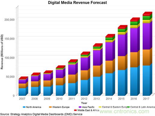 圖1:數(shù)字媒體市場收益規(guī)模預測