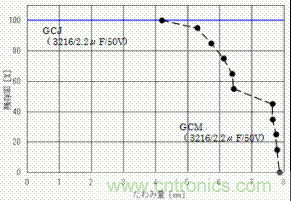根據這個評價結果,于一般用2端子的MLCC(GCM系列)的殘存率的比較如圖7、圖8所示。GCJ、KCM/KC3系列,電路板的偏轉量在6mm的時候也看不見對陶瓷部分的破壞,于GCM系列相比耐電路板彎曲性有了飛速的改善。