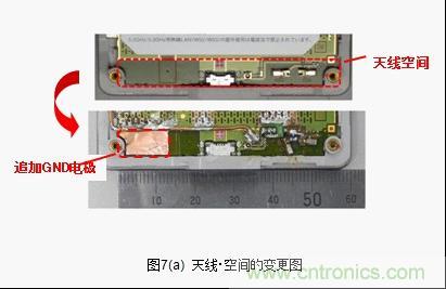 接下來將針對天線小型化的有效性進行檢測。一般來說天線具有改善接地距離的特性。但是,天線占據(jù)空間(排除了GND領域)很大的話天線以外的 元器件安裝空間就會受壓迫。天線小型化和縮小天線空間迫在眉睫。當天線空間的一部分被GND占據(jù),對這時候的天線特性的變化進行評價。天線空間的寬度為52mm,其中13mm被GND占據(jù),low band的特性劣化,變成了跟LC電路等同的Total Efficiency(圖7(b))。這就意味著實際上天線空間的面積可減少25%。