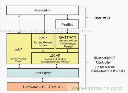 圖2:主機和Bluetooth® LE控制器堆棧結構