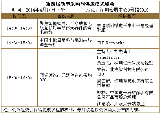 此次峰會旨在幫助供需雙方的經理人了解熱點市場帶來的對半導體元器件的需求變化,中國小批量供應服務與采購趨勢。圓桌討論將針對采購和供應中的熱點話題,中國電子分銷商聯盟秘書長劉杰博士與行業領先的國內和國際分銷商總裁和總監們逐一分享思路,歡迎參與互動。參會可以通過網上或微信(關注我愛方案網),報名注冊:www.tiangongcn.com/seminar/95/agenda