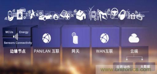 目前,整個(gè)物聯(lián)網(wǎng)的系統(tǒng)架構(gòu)可以分為5個(gè)部分,分別是邊緣節(jié)點(diǎn)、PAN/LAN互聯(lián)、網(wǎng)關(guān)、WAN互聯(lián)和云端,如圖1所示。飛思卡爾發(fā)現(xiàn),很多公司所做的產(chǎn)品無法在邊緣節(jié)點(diǎn)、網(wǎng)關(guān)以及云端這3個(gè)層次中共用。例如可穿戴設(shè)備,或者所設(shè)計(jì)的智能家居中的某些節(jié)點(diǎn),要對(duì)該節(jié)點(diǎn)進(jìn)行控制,可能選擇方案是“入門級(jí)低功耗MCU+連接性+傳感器”,這種設(shè)計(jì)方式是純粹的MCU設(shè)計(jì)方式。到了網(wǎng)關(guān)層次,復(fù)雜度會(huì)提高,就更偏向于使用高端的MCU,甚至是MPU。到云端就更復(fù)雜了,它的設(shè)計(jì)可能采用應(yīng)用處理器或者通信處理器。在物聯(lián)網(wǎng)的構(gòu)架中,大部分設(shè)備使用不同的技術(shù)、工具和開發(fā)環(huán)境,甚至連編程語言也是不同的。怎樣來解決這個(gè)問題呢?
