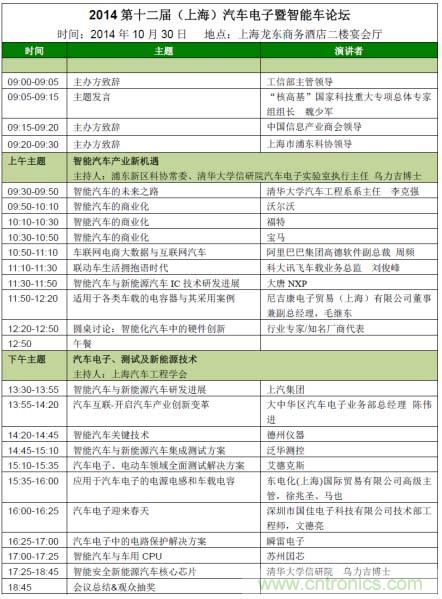 【導讀】我愛方案網 (www.52solution.com)、電子元件技術網 (www.tiangongcn.com) 攜手中國電子展、清華大學、上海市浦東新區科學技術協會、上海市汽車工程學會順應時勢,將在2014年10月30日共同主辦第十二屆(上海)汽車電子暨智能車論壇。