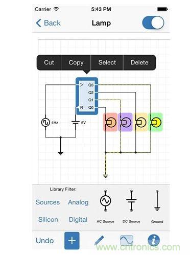 《電子電路仿真和設計 iCircuit》是首屈一指的電路設計和試驗應用程序,功能非常強大,這是學生,業余愛好者和工程師的完美伴侶。其先進的模擬引擎可以處理模擬和數字電 路和實時分析的功能 。只要您會任何CAD程序,您就可以使用它:添加元素,它們連接在一起,并設置其屬性,但iCircuit不像其他CAD程序,因為它始終是模擬。這就像 與實際電路的工作 。你不停止進行測量,或花很多時間配置。雖然這個只是玩玩,但他像真實的電路一樣!有超過30種元件,你可以用它來構建電路。從簡單的電阻,開關,晶體 管,數字門。您還可以模擬探頭檢測周圍的電路,有即時讀取電壓和電流的萬用表。如果你想看經過一段時間數值是如何變化的,那么你可以使用內置示波器。