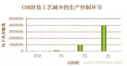如果生產(chǎn)1平米的P10,COB封裝工藝就要省去4萬個控制點。如果將點密度縮小一倍,也就是點密度達到P5級別,COB封裝工藝每平米就要省去16萬個焊點。如果將點密度進一步縮小到P2.0級別,COB封裝工藝每平米就要省去100萬個焊點。如果點密度達到P1.0級別,COB封裝工藝將會省掉400萬個焊點。相反SMD封裝如何保證這幾百萬個焊點不出現(xiàn)假焊、連焊、虛焊,是一項令人十分頭疼的問題。
