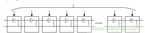 圖 1給出一個預定數量的延遲單元構成的延遲線電路和通過配置字實現的反饋通道(Dfb)的示例,通過延遲配置字,可以在Din引腳輸入信號和Dout引腳輸出信號之間設定所需 延時。每個延遲單元在Din和Dl兩個引腳之間生成固定的通道延時。