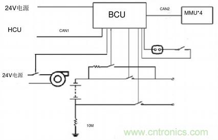 那么動力電池是如何與系統整合的呢?圖3為電池系統原理框圖,他主要包括BCU(電池主控制單元)、HCU(上位機/控制面板)以及MMU(電池從控單元)。首先BCU通過CAN1接收來自HCU的上位機命令,直接控制總負、正接觸器和預充繼電器,每組MMU通過CAN2總線將數據發送到BCU,BCU作出統一管理并將數據發送到HCU。管理系統主要的故障包括電池組/電池單元過壓及欠壓、過流、過溫、CAN通訊異常、單元控制故障等。