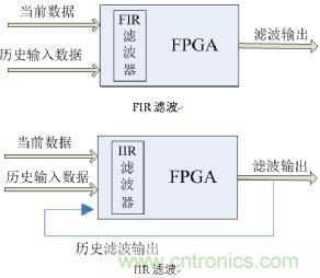 l信號處理速度:FIR的濾波輸出取決于當前輸入數(shù)據(jù)和歷史輸入數(shù)據(jù),IIR的濾波輸出取決于當前輸入數(shù)據(jù)、歷史輸入數(shù)據(jù)和歷史輸出數(shù)據(jù)。以基于FPGA硬件的數(shù)字濾波器為例,F(xiàn)IR在處理信號時不需等待前一個信號的濾波輸出,只需要考慮輸入數(shù)據(jù)便可實時濾波;IIR需要等待上一個信號的濾波輸出,存在一定的時間延遲,所以處理速度上沒有FIR快。