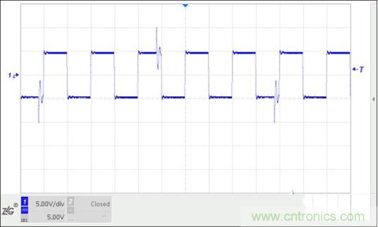 調試中發現,驅動器上電但未開啟輸出,電機轉軸處于自由靜止狀態,測量到一個較大的值。用示波器測量傳感器輸出,發現100kHz脈沖上每個幾個周期出現一些尖峰振蕩,經過比較器后多了些脈沖,導致測頻結果高于100kHz。那么干擾信號從何而來?首先懷疑是驅動器,驅動器斷電干擾消失。把傳感器電纜從傳感器處拔出,100kHz和干擾都沒有了。證明干擾由驅動器產生,通過驅動器輸出線、電機、扭矩傳感器及連線耦合到功率分析儀。