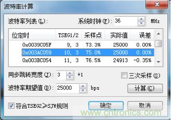 了解設置波特率的原則后,我們采用ZLG的波特率計算軟件,對25kbps波特率的設置參數(shù)進行計算,計算結果如圖3。