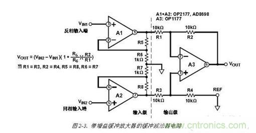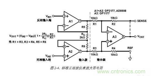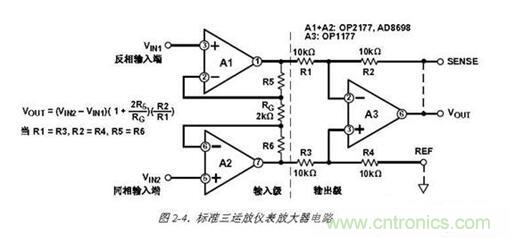 最后,由于結(jié)構(gòu)上的對稱性,輸入放大器的共模誤差,如果它們跟蹤,將被輸出級的減法器消除。這包括諸如共模抑制隨頻率變換的誤差。上述這些特性便是這種三運放結(jié)構(gòu)得到廣泛應用的解釋。