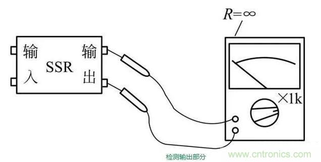 斷開固態繼電器輸入端的工作電壓后,其輸出端兩引腳之間應截止,萬用表表針指示為無窮大。
