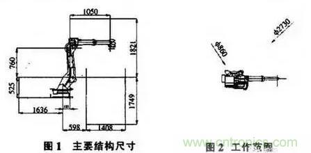根據(jù)A II—V6L型工業(yè)機(jī)器人的主要參數(shù)進(jìn)行設(shè)計(jì)。主要結(jié)構(gòu)尺寸如圖I所示。機(jī)器人的工作范圍見圖2。