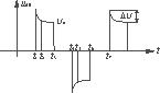 2)t2-t3時段 uAB="Uo",D12反偏截止。D1與D4導(dǎo)通,忽略D1與D4上的壓降,UEF=Uo。以E為電壓參考點(diǎn),UF比UE電位低Uo,記作-Uo;由于UC=UEG=Uo+ΔUo,則UG比UE低Uo+ΔU,記作-(Uo+ΔU);這樣UFG=UF-UG=ΔU。