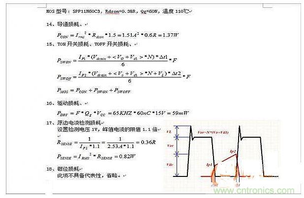 (關(guān)于開關(guān)損耗和導(dǎo)通損耗,上面的計(jì)算方法應(yīng)該是正確的,參考《精通開關(guān)電源》第5章。最有可能會(huì)出現(xiàn)的問題是,測(cè)量的準(zhǔn)確性如何,因?yàn)檫@會(huì)導(dǎo)致計(jì)算值與實(shí)際值相差2--5倍。)