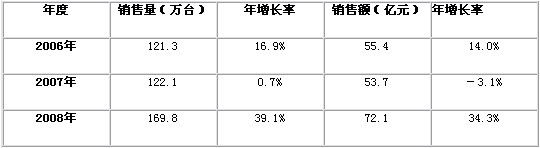 表1 2006-2008年中國數(shù)碼攝像機(jī)市場銷售情況