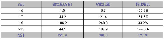 2009年第一季度,中國LCD顯示器自有品牌銷量為275.9萬臺,同比上升37.0%。由于LCD顯示器自有品牌的三、四市場的增長以及網吧牌照開放的利好,2009年一季度,市場呈現同比快速增長的局面。從LCD的尺寸別分布可以看到,19LCD銷量同比增長為33.2%;大于19LCD銷量同比增長為144.5%,成為未來的潛力市場。