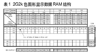 每個(gè)象素對應(yīng)18-bit的數(shù)據(jù),其中每個(gè)三色子象素為6-bit。GDDRAM對圖形顯示的象素?cái)?shù)據(jù)具體對應(yīng)安排見表1。