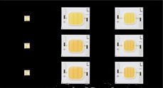 - 第一類在底板上配備多個LED芯片,輸入功率為0.5W時實現了38lm,顯色指數為85