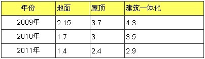 與此同時的各地政府也紛紛出臺政策刺激光伏電站的發(fā)展,杭州市提出“陽光屋頂”計劃,廣州,南昌,無錫,保定,上海紛紛提出了本地的光伏電站發(fā)展規(guī)劃,中國光伏最發(fā)達(dá)的江蘇省率先出臺了《太陽能光電建筑應(yīng)用財政補(bǔ)助資金管理暫行辦法》,其中規(guī)定,通過3年努力,力爭在全省建成光伏并網(wǎng)發(fā)電裝機(jī)容量400兆瓦,2009-2011年分年度目標(biāo)電價為: