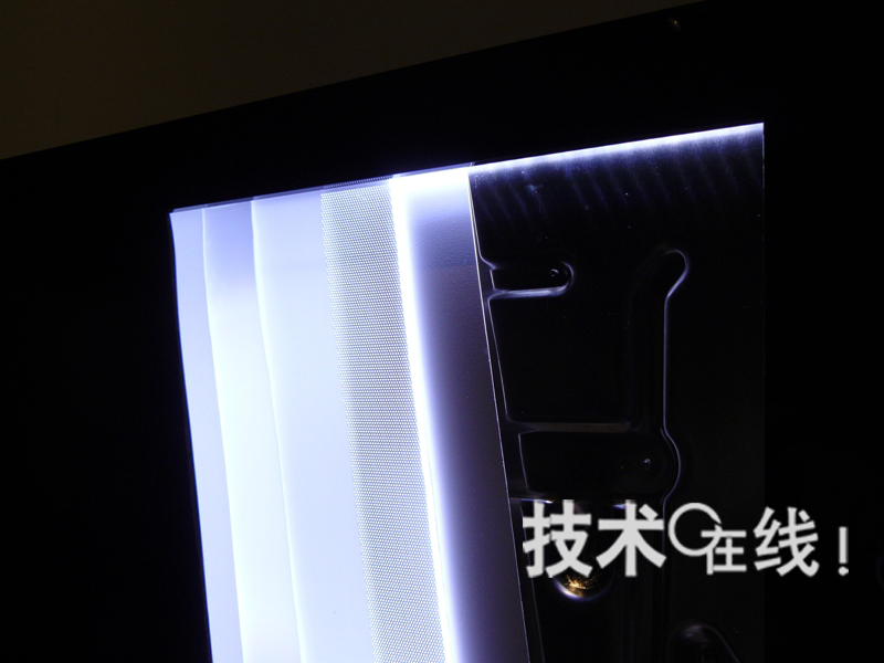 EX700系列雖然為調諧器內置機型,但最薄部分只有22mm。這是通過采用白色LED作為背照燈光源,并將其配置在面板上下兩邊的邊緣而實現的。配備的白色LED數量“不便透露”(索尼)。