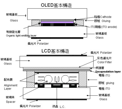 AMOLED不管在畫質、效能及成本上,先天表現都較TFT LCD優勢很多。在顯示效能方面,AMOLED反應速度較快、對比度更高、視角也較廣,這些是AMOLED天生就勝過TFT LCD的地方;另外AMOLED具自發光的特色,不需使用背光板,因此比TFT更能夠做得輕薄,而且更省電;還有一個更重要的特點,不需使用背光板的 AMOLED可以省下占TFT LCD 3至4成比重的背光模塊成本。