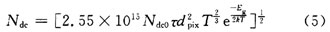 對(duì)于CCD圖像傳感器而言,導(dǎo)致暗白點(diǎn)、白色損傷或顆粒的原因是由于光電二極管的暗電流,這也是決定畫質(zhì)最重要的因素。固定圖像噪聲的起因是各像素中暗電流不均勻,即使沒(méi)有入射光一樣會(huì)發(fā)生,它與噪聲信號(hào)電壓的儲(chǔ)存時(shí)間成正比,并具有與溫度密切相關(guān)的性質(zhì),如式(5)所示: