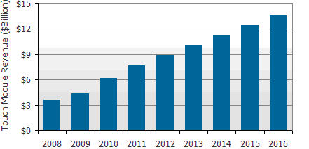 - DisplaySearch估計2016年觸控面板市場將成長到140億美元