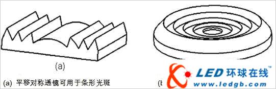 還應(yīng)該指出,一般情況入射和出射兩個面中只要有一個面做成鋸齒面就可以滿足設(shè)計要求。如果希望入射面做成鋸齒面而出射面做成平面,上述析也是一樣的。例如可以使外表面是平滑面而內(nèi)表面是鋸齒面,這就可以避免灰塵積累。更重要的是如果鋸齒的那一面不是平面而是曲面,其結(jié)果是相同的。這樣我們就不僅可以做成平片狀的菲涅爾透鏡,也可以做成其他諸如弧形瓦片狀或碗形的菲涅爾透鏡了。