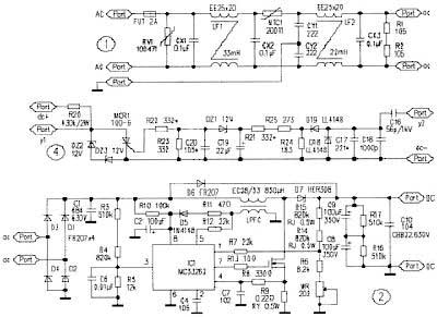 MC33262是一款可靠且成本低廉的功率因數(shù)校正芯片,其應用電路如圖2所示。市電經(jīng)電源濾波器和整流器得到脈動直流電。電流通過啟動電阻R10向C2充電至10V時,IC1開始工作。整流后的直流脈動電壓在R5的分壓作為取樣信號經(jīng)IC1的③腳輸入乘法器。