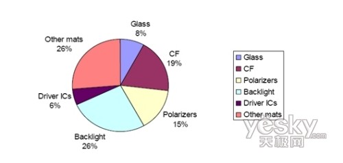 其中背光源的25%成本是基于CCFL的數(shù)據(jù),如果采用LED作為背光源,它所占的成本將大大超過(guò)這個(gè)比例,大約要占到50%的成本。采用場(chǎng)順序制以后,拿掉了濾色片就相當(dāng)于發(fā)光效率提高了70%,這是非常可觀(guān)的。這意味著LED的數(shù)量可以減少70%,LED的成本就可以減少70%。而且LED數(shù)量減少70%以后,其發(fā)熱量可以減少70%,耗電也可以減少70%。