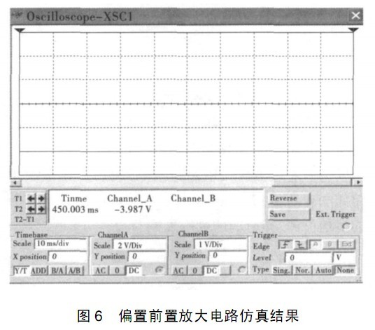 該放大電路經(jīng)過仿真以后從波形中可以觀察到輸出電壓被拉低到- 4 V 左右, 實(shí)現(xiàn)了合理設(shè)置靜態(tài)工作點(diǎn)的目的;