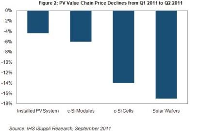 晶圓領域直到最近還是PV價值鏈中利潤比較豐厚的環節。但是,產能大量增加,包括垂直整合型企業增加的產能,導致上半年晶圓面臨降價壓力。這進而降低了生產電池的成本,導致模組的價格下降。